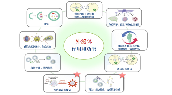3、外泌体在癌症发生发展中有什么作用? 外泌体在癌症的发生发展中发挥着关键作用,包括免疫抑制、血管生成、细胞迁移和侵袭,更重要的是,携带肿瘤微环境的信息。外泌体可以被看作非侵入性早期癌症诊断和疗效评估的理想生物标志物。